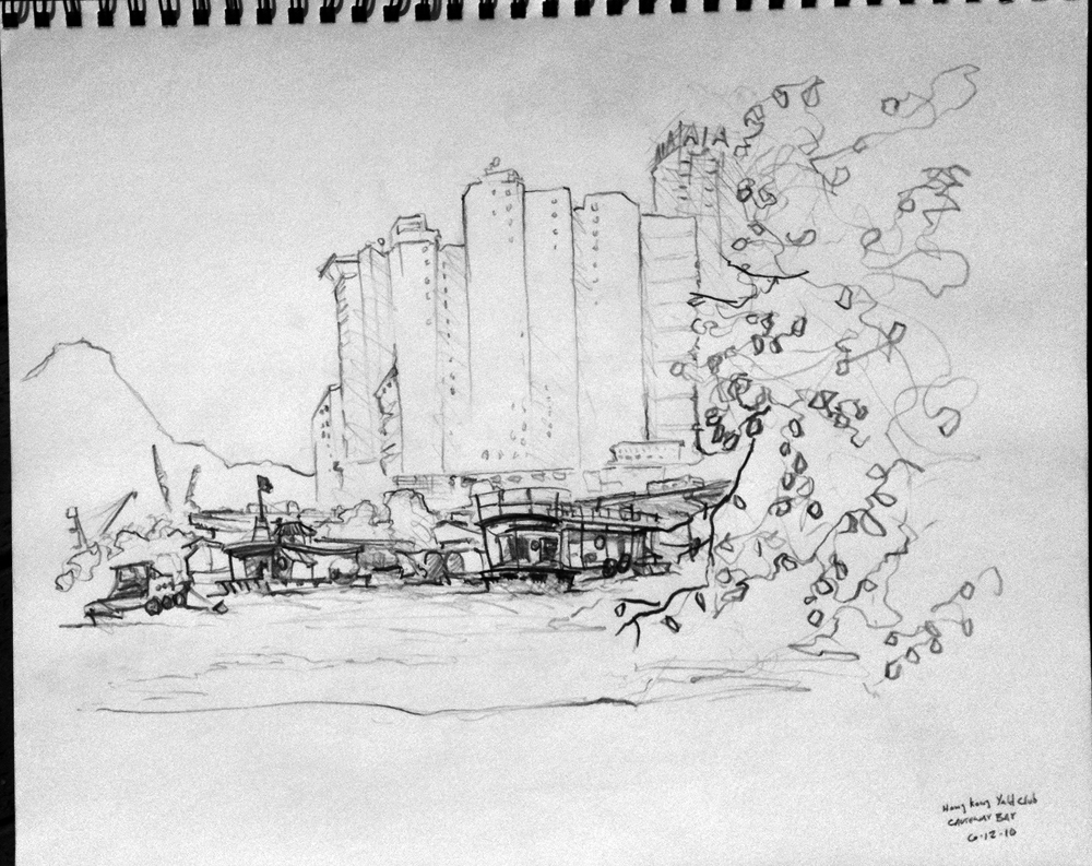 I spent a good part of the day out running around to the library and shopping, but still made time to do 3 drawings. The first drawing is from the Hong Kong Yacht Club. I haven’t been there in a long time. And if I wasn’t in a hurry I would have stayed to watch the noon canon fire off. Maybe next time I’ll bring the kids to see it as well.